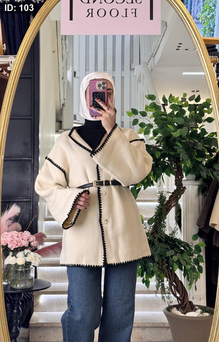 جاكيت صوف تقيل مميز متوفر باللون البيج والاسود
