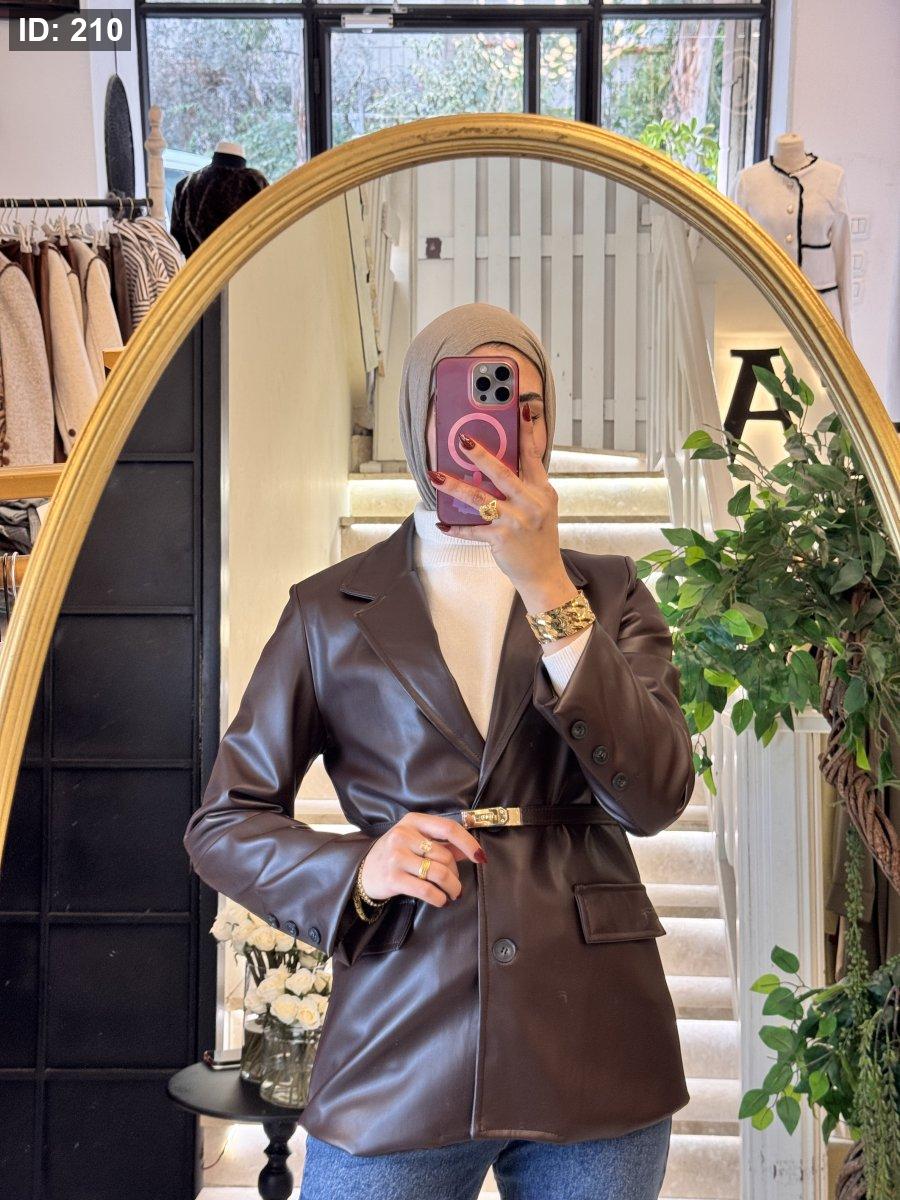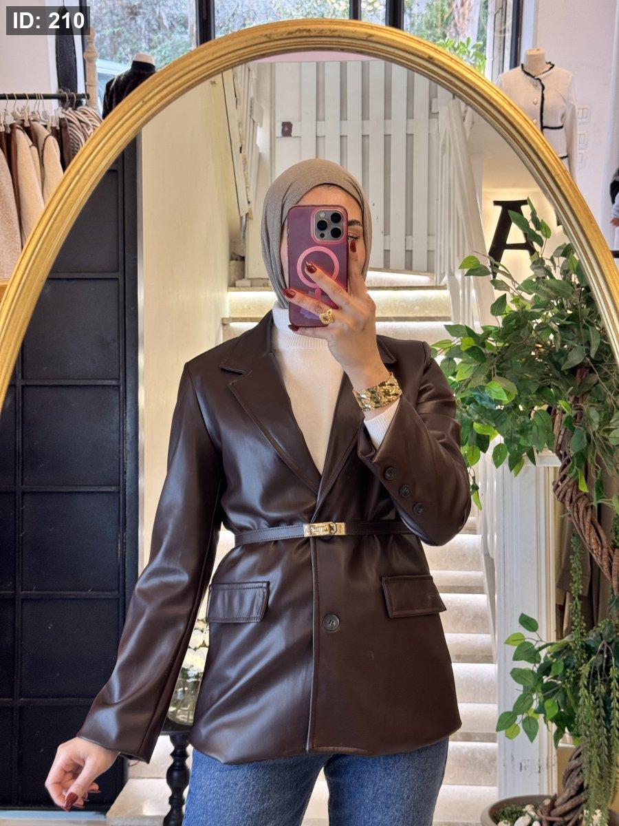 جاكيت جلد مميزه مع قشاط باللون الخمري
