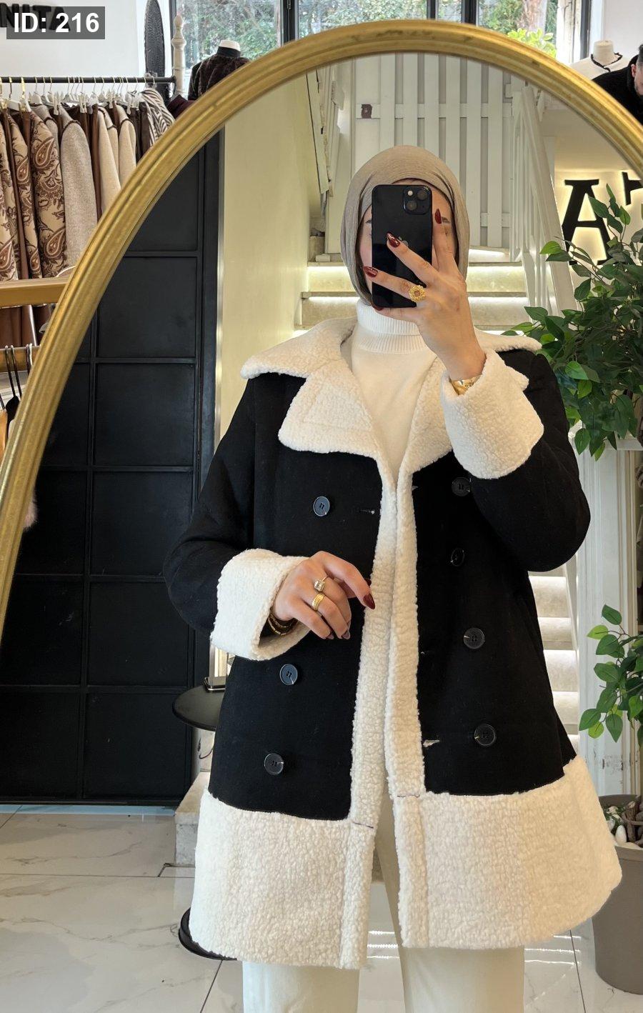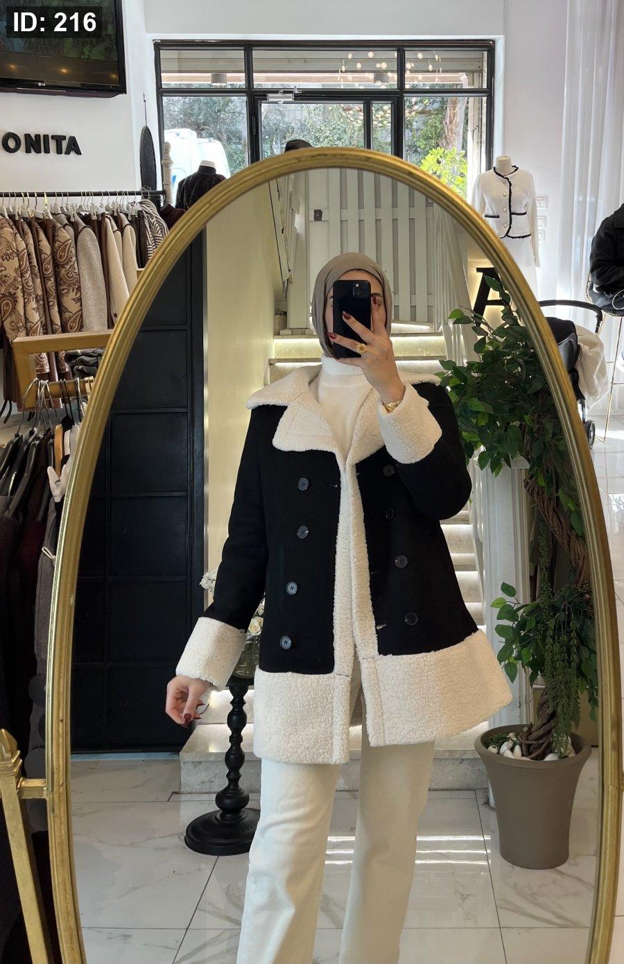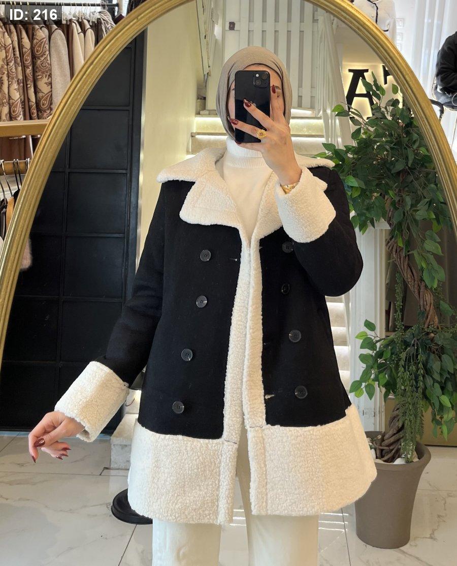 جاكيت مميز بقبة و اكمام فرو ابيض