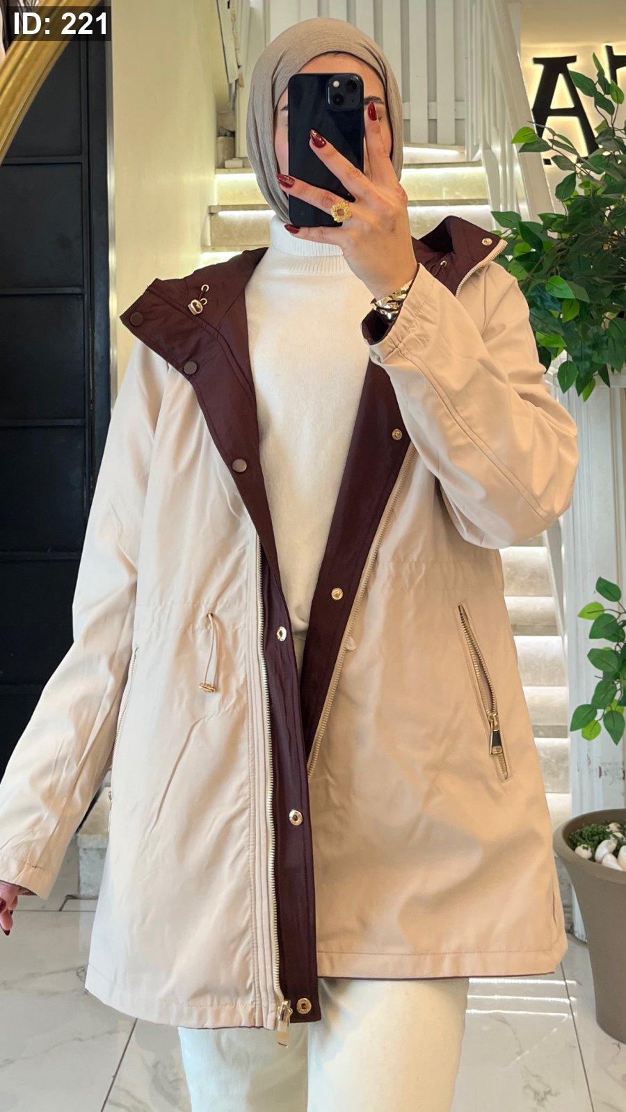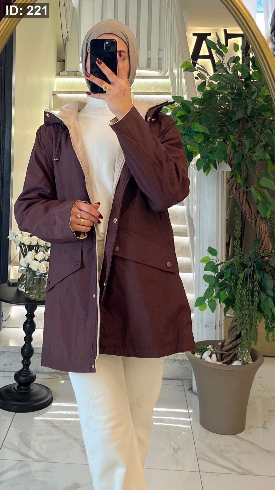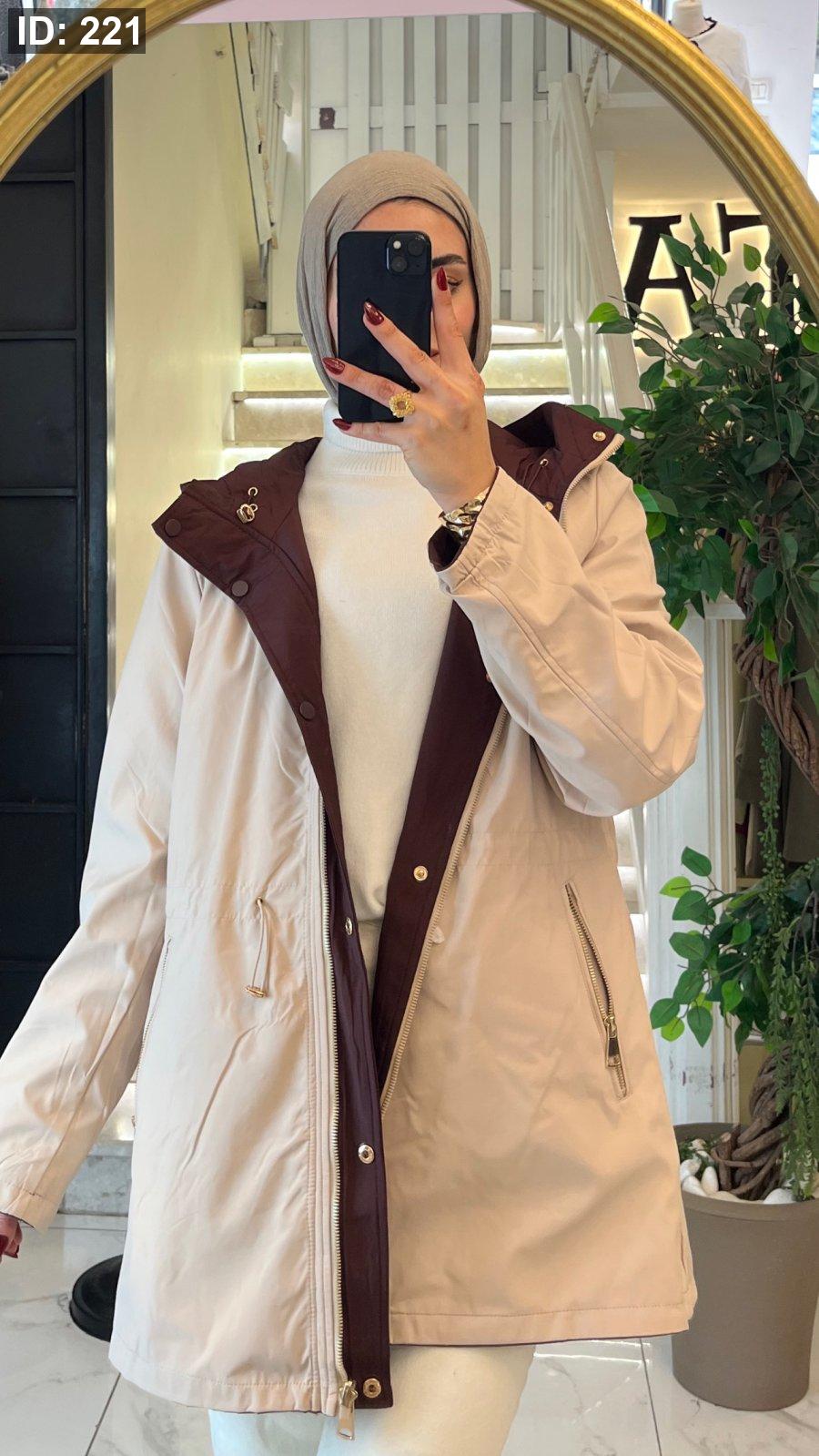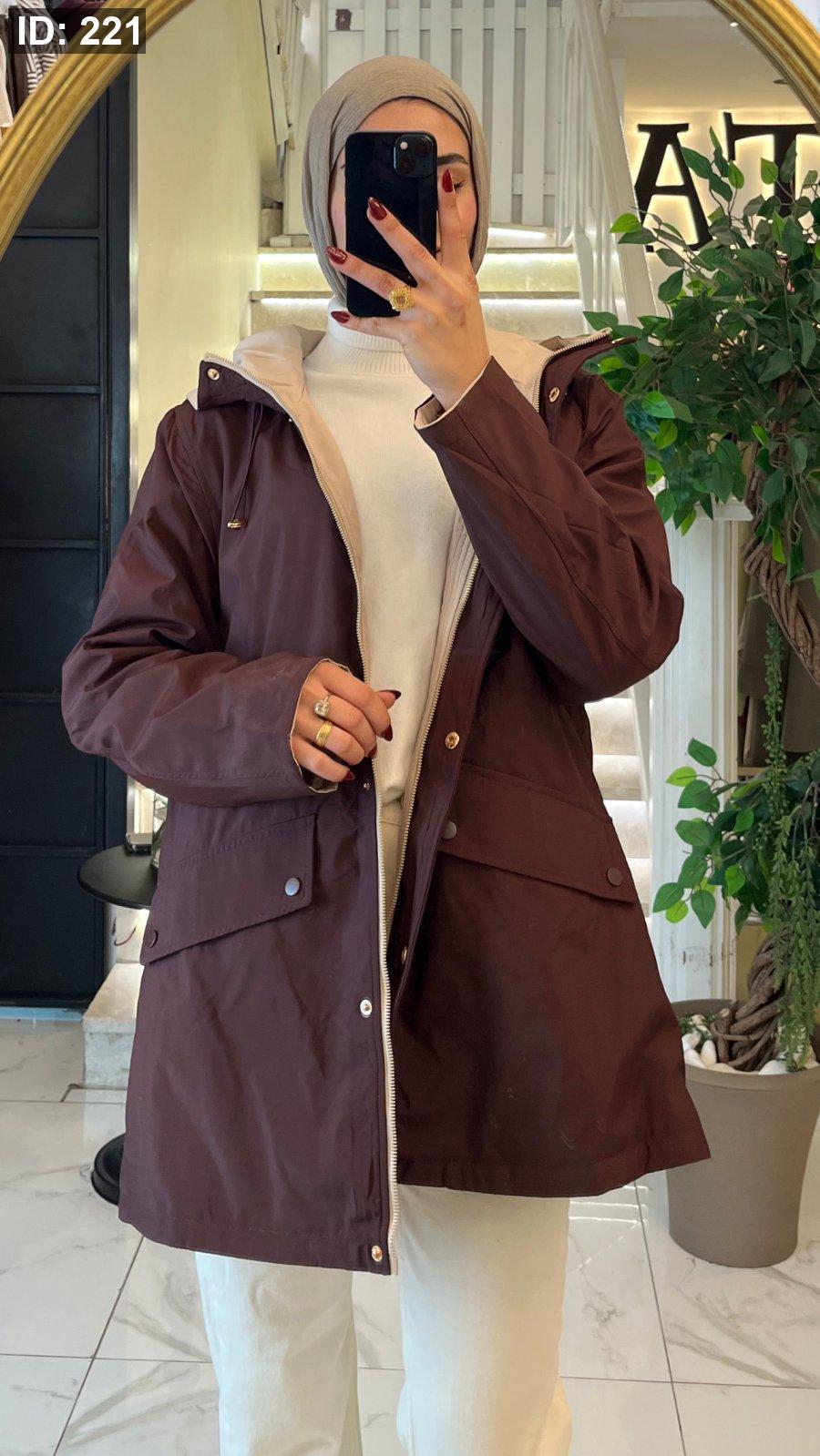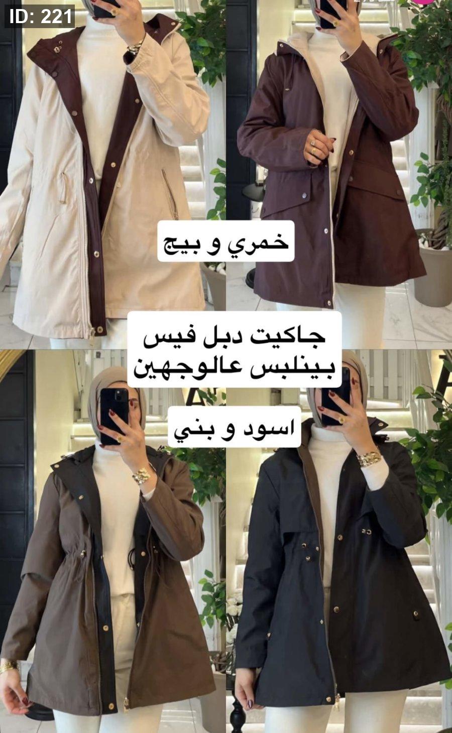 جاكيت مميزه بيلتبس عالوجهين كل وجه لون بيج مع خمري واسود مع بني