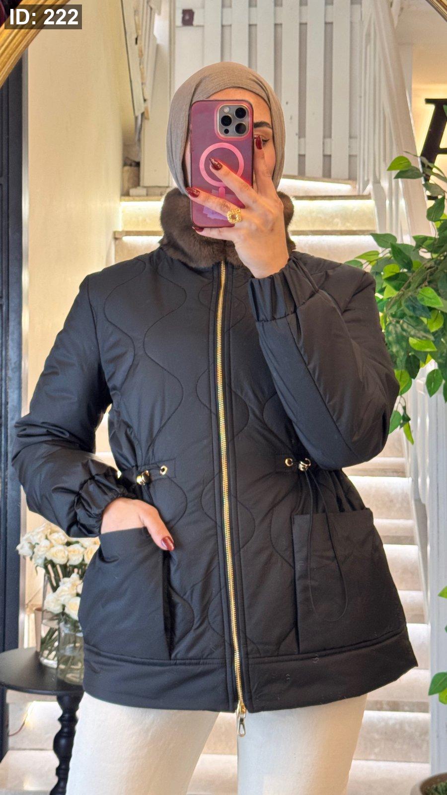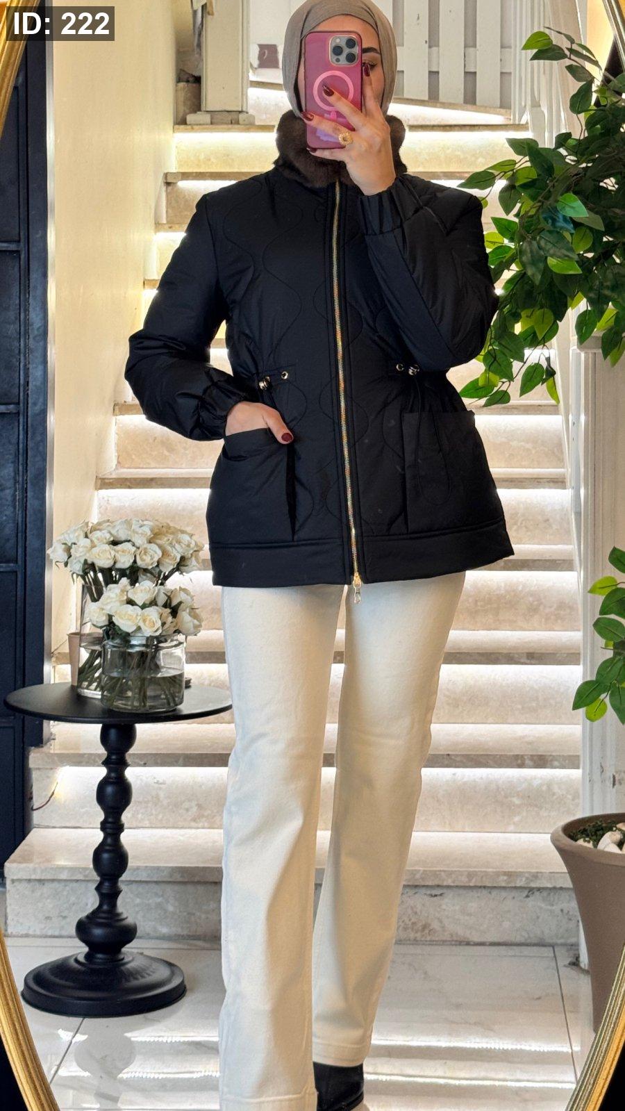 جاكيت نفخ مميزه باللون الاسود مع فرو بني