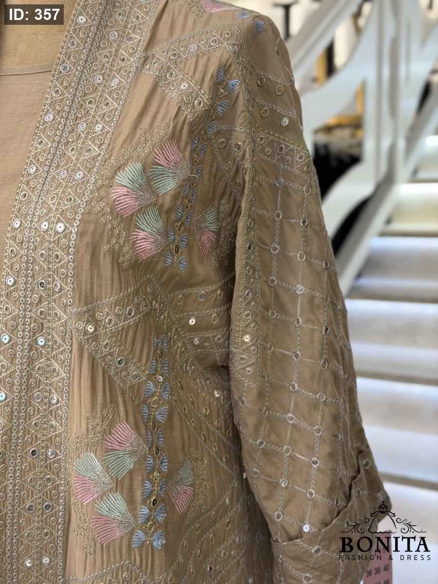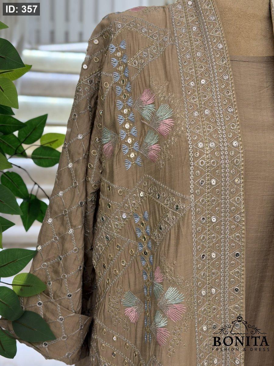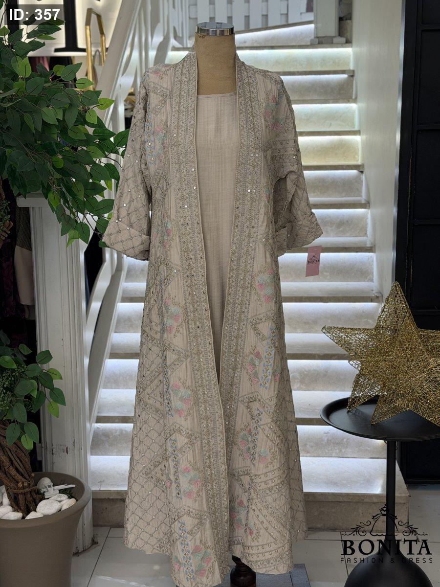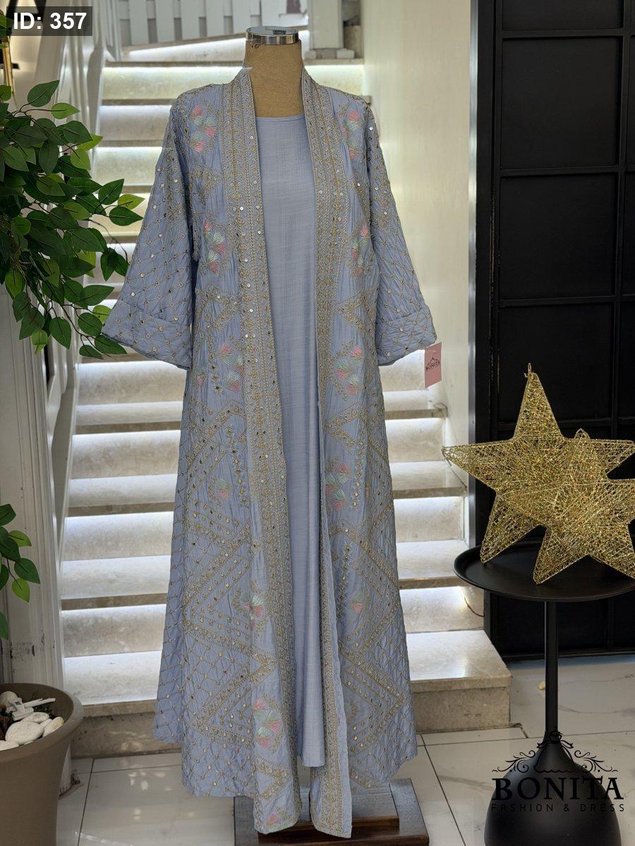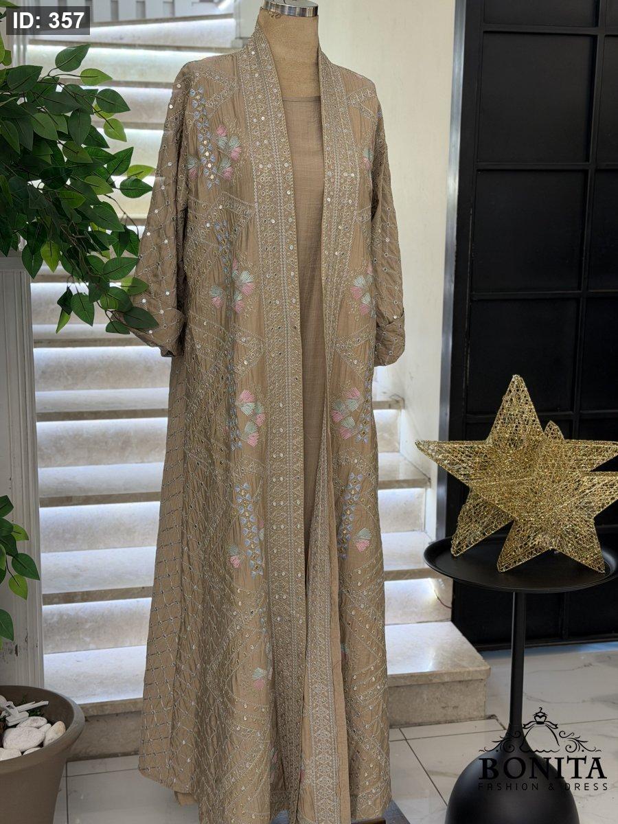 عباي كريب مجهد فاخر مع تطريز وترتر يغطي الأكمام والأطراف الامامية