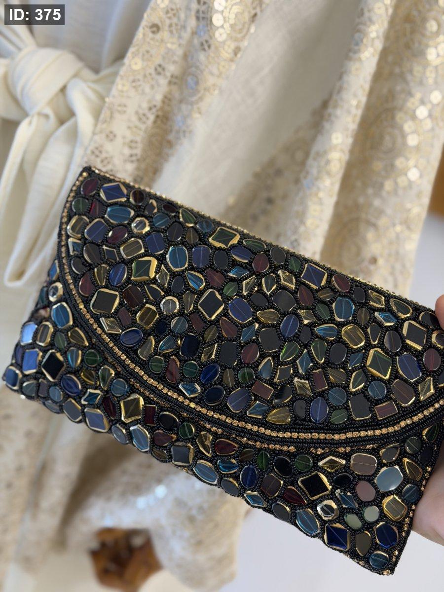 شنته مميز باللون الاسود مرصعه بسترس بالوان مختلفه